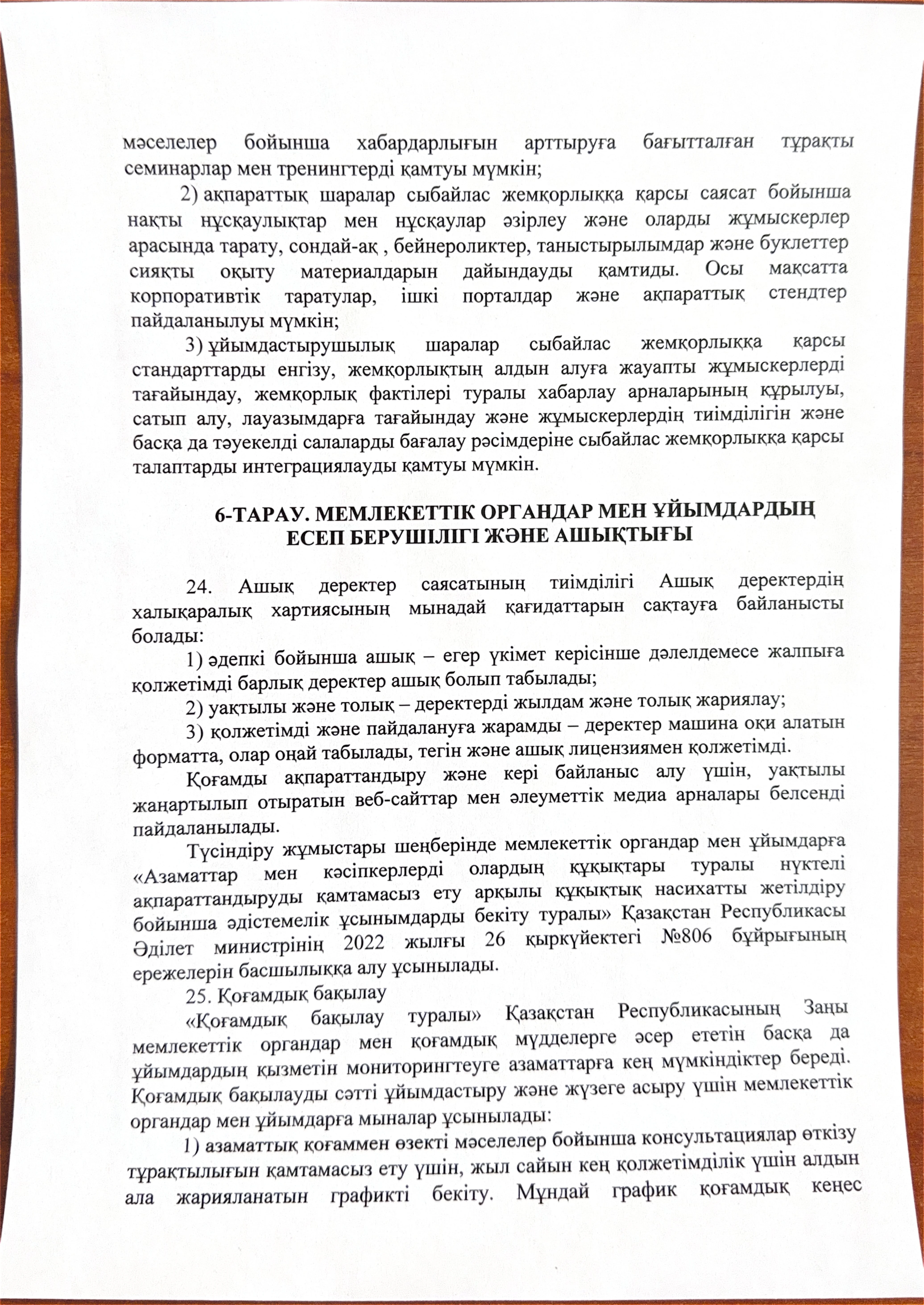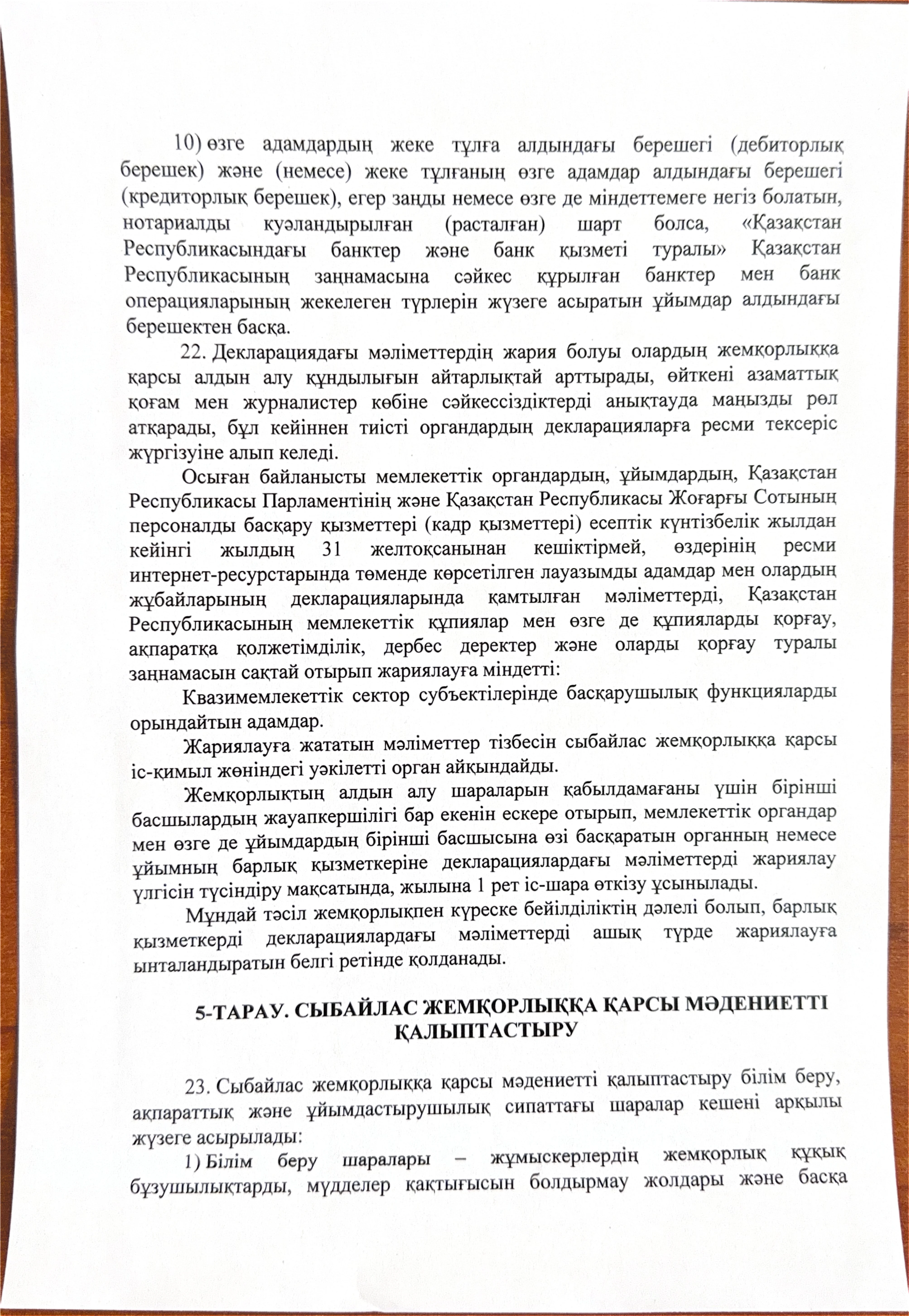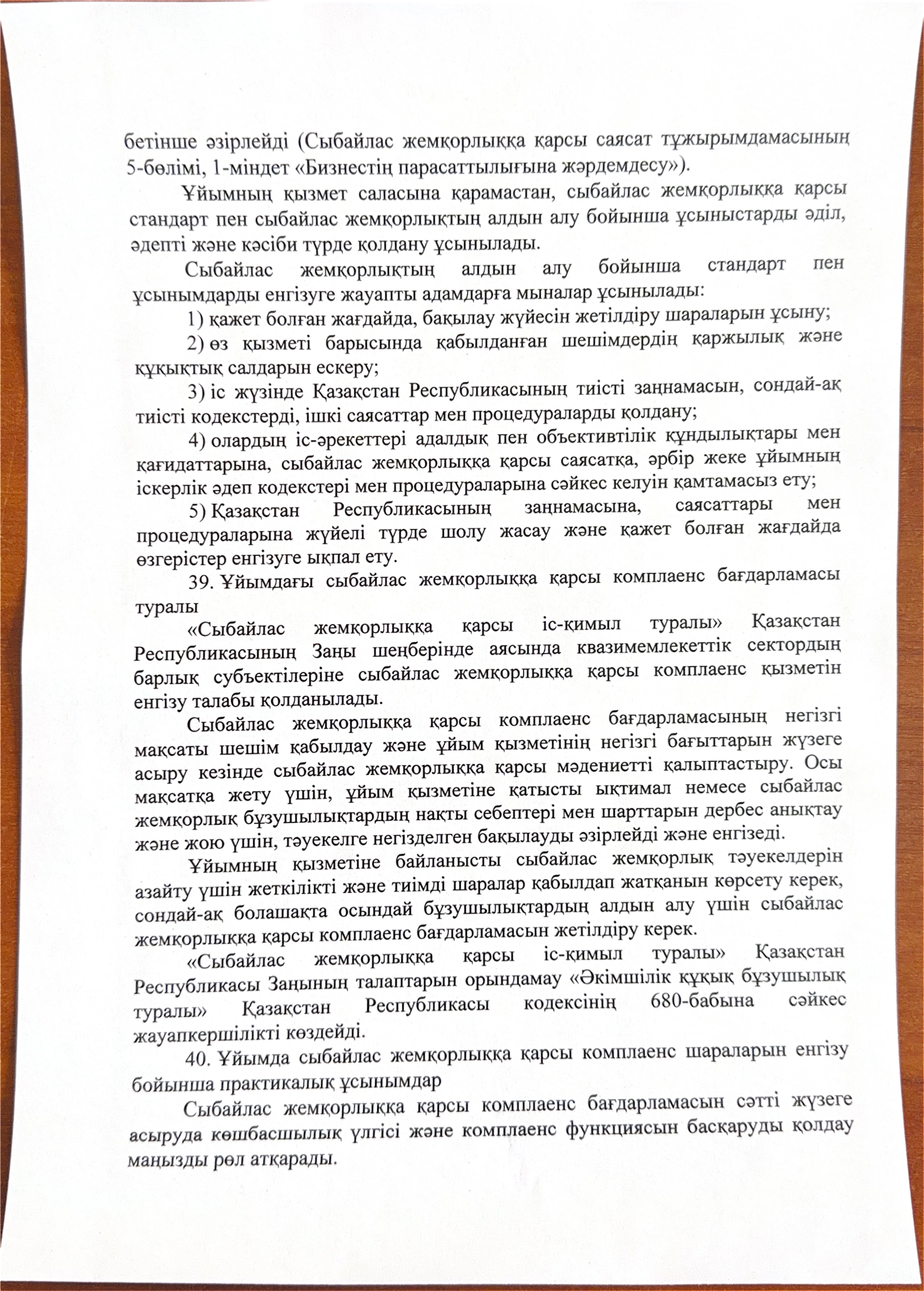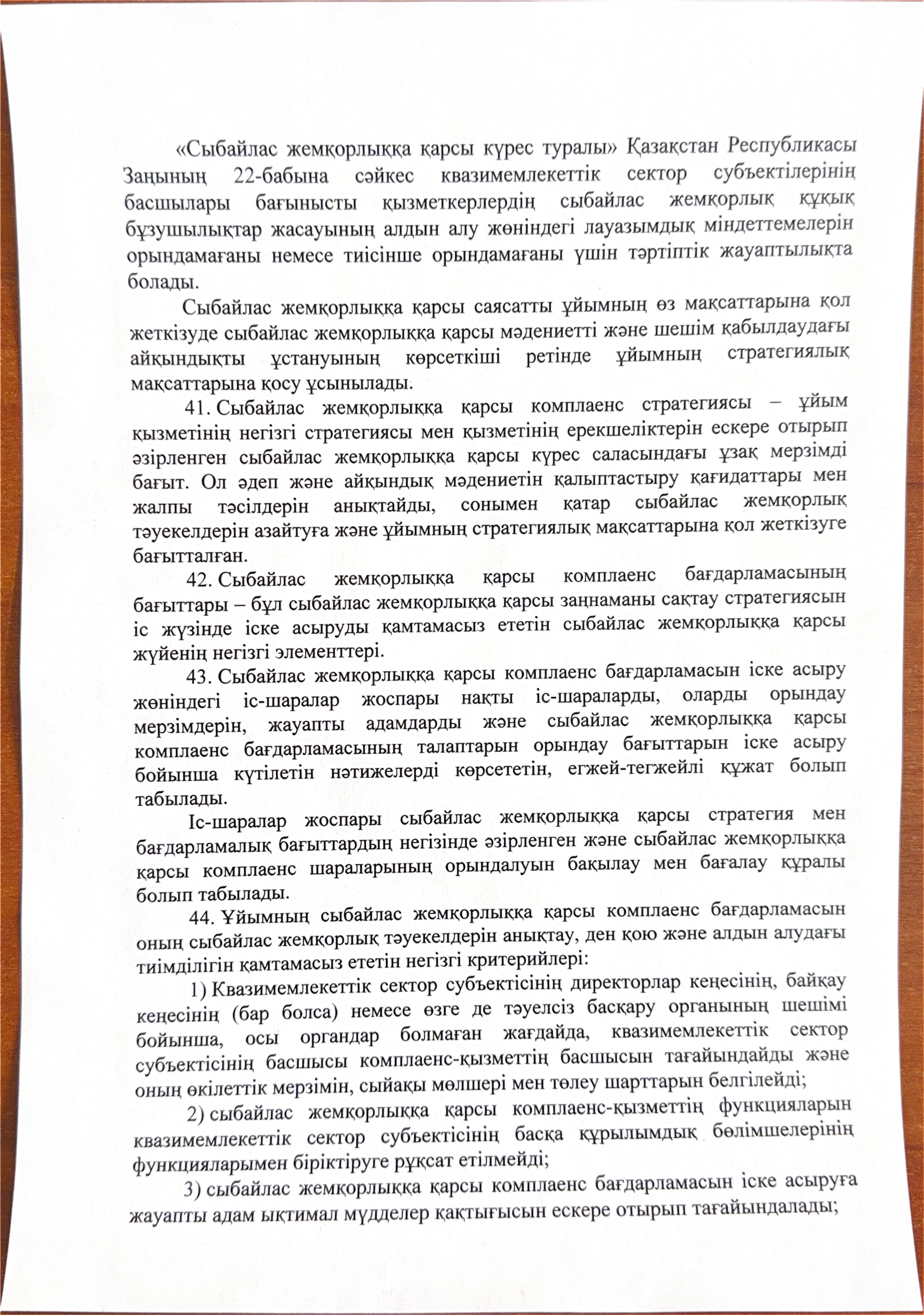 Исатай Әбдікәрімов атындағы Қызылорда политехникалық жоғары колледжі коммуналдық мемлекеттік қазыналық кәсіпорнының сыбайлас жемқорлыққа қарсы стандарты