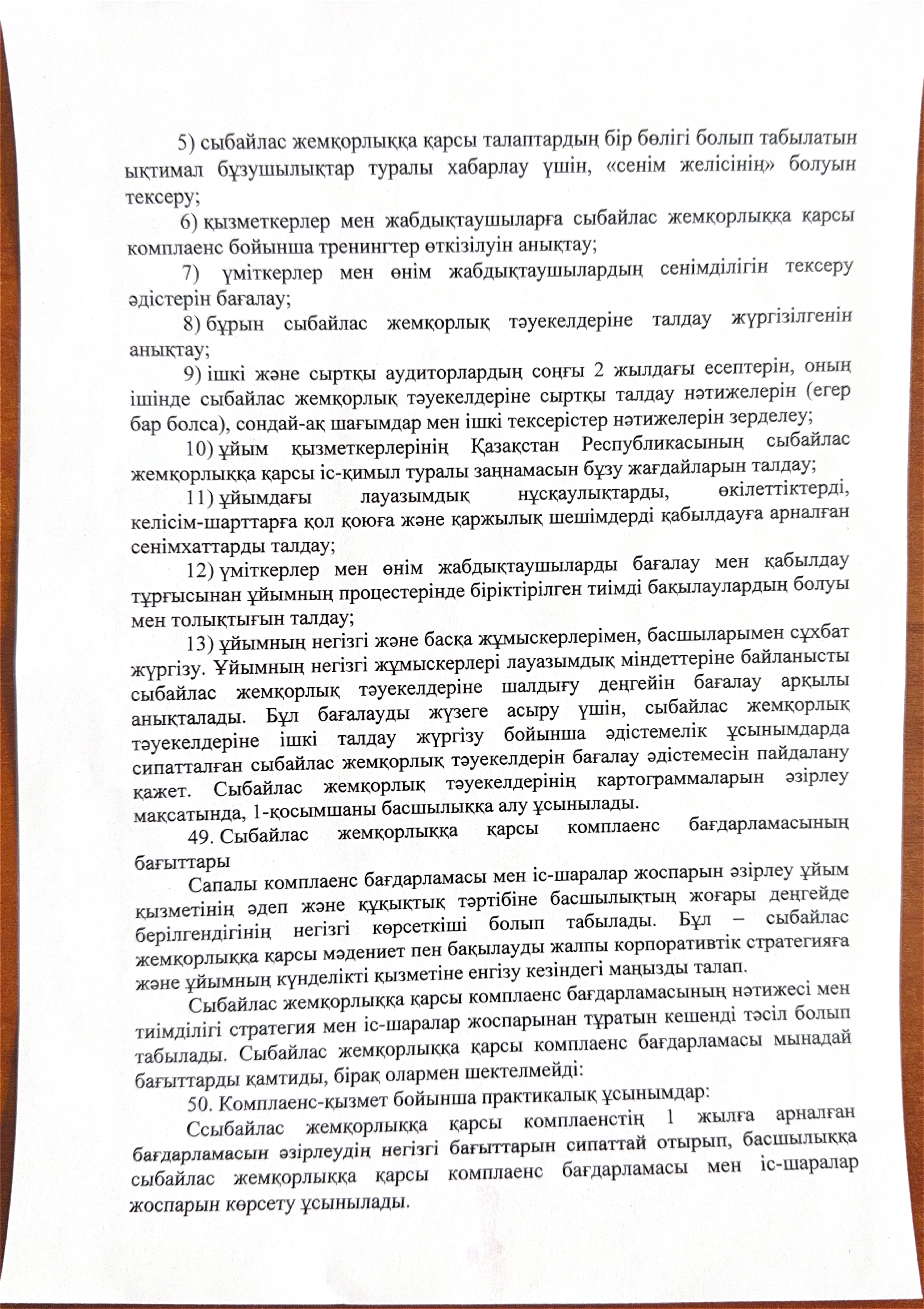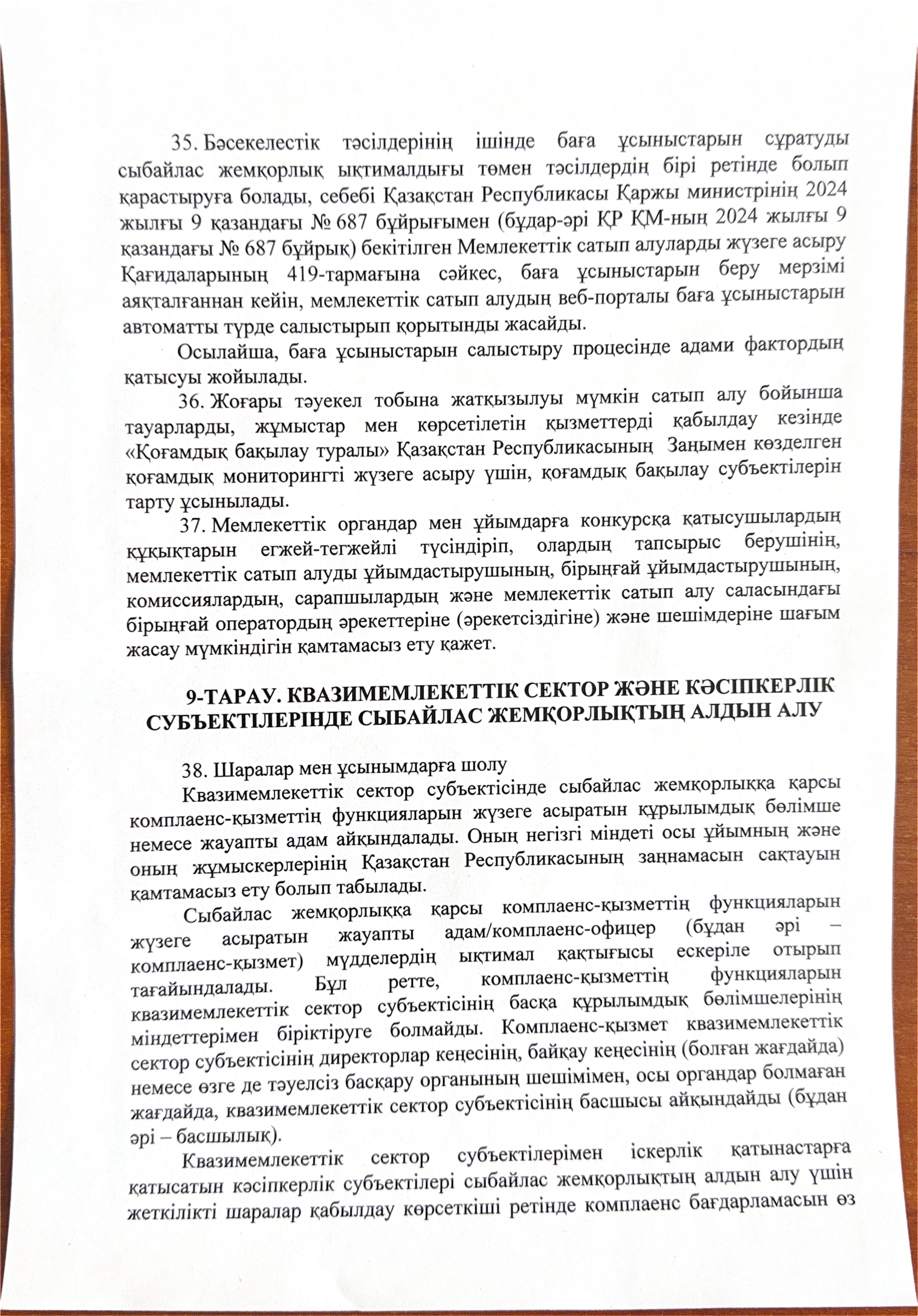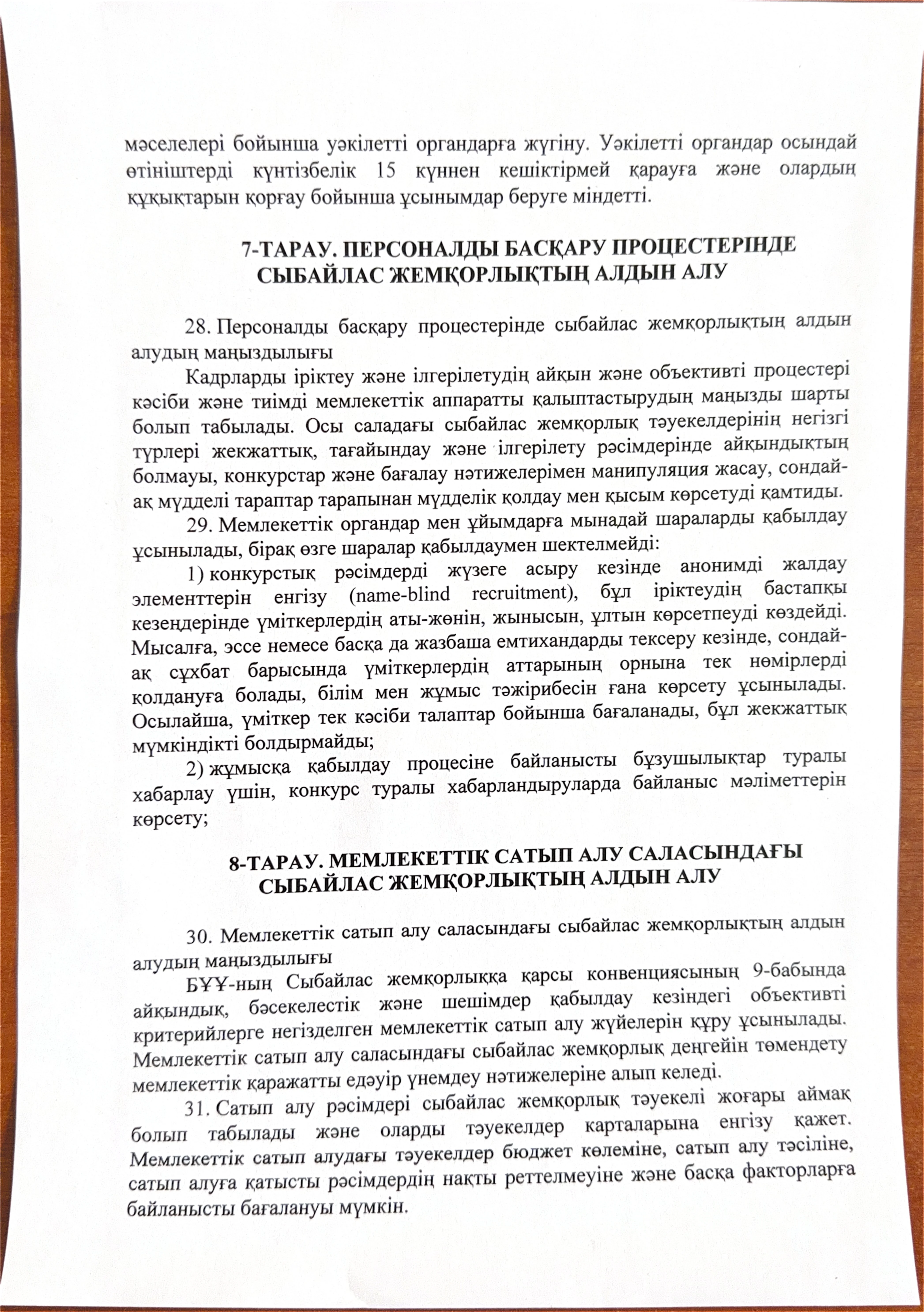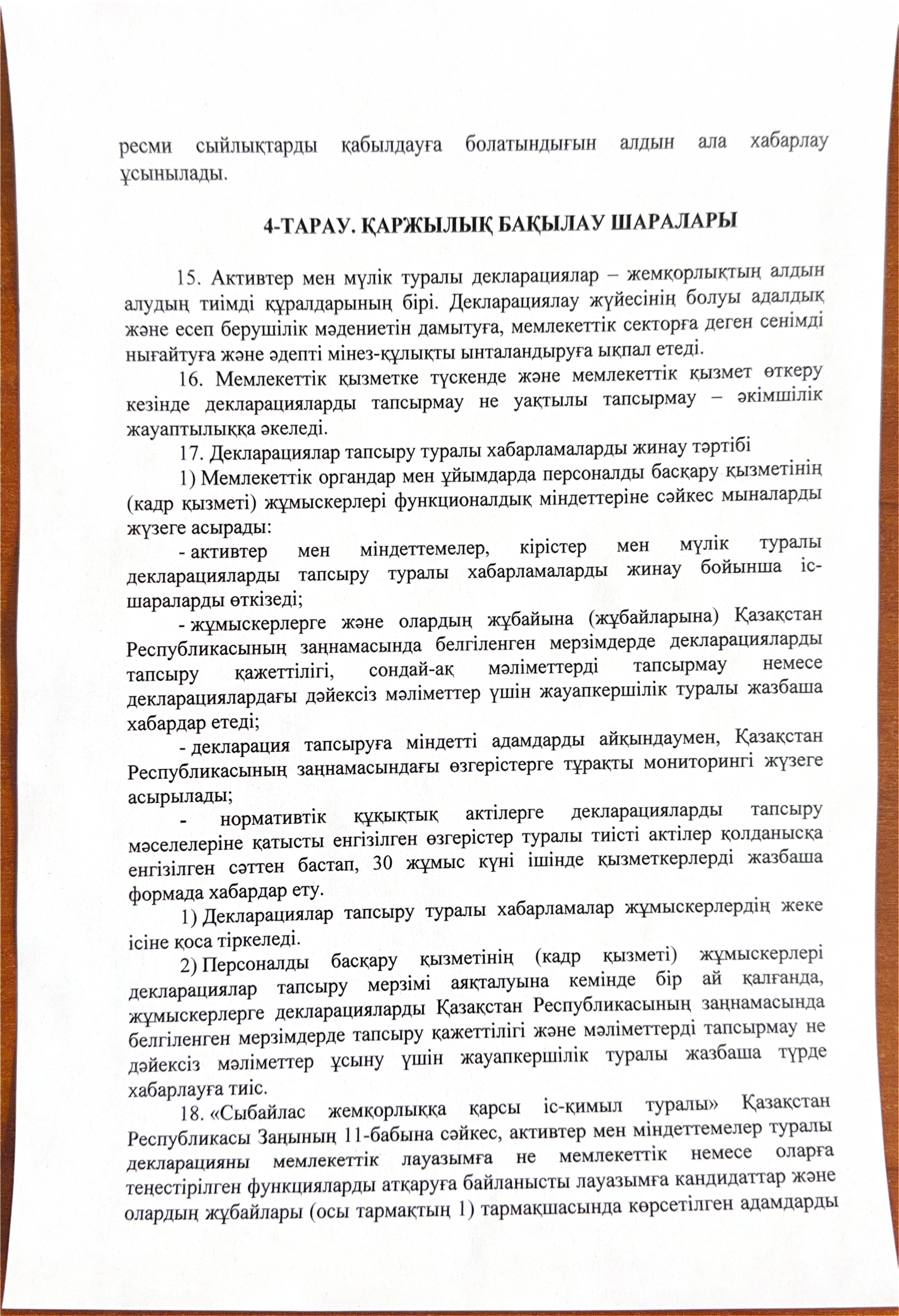 Исатай Әбдікәрімов атындағы Қызылорда политехникалық жоғары колледжі коммуналдық мемлекеттік қазыналық кәсіпорнының сыбайлас жемқорлыққа қарсы стандарты
