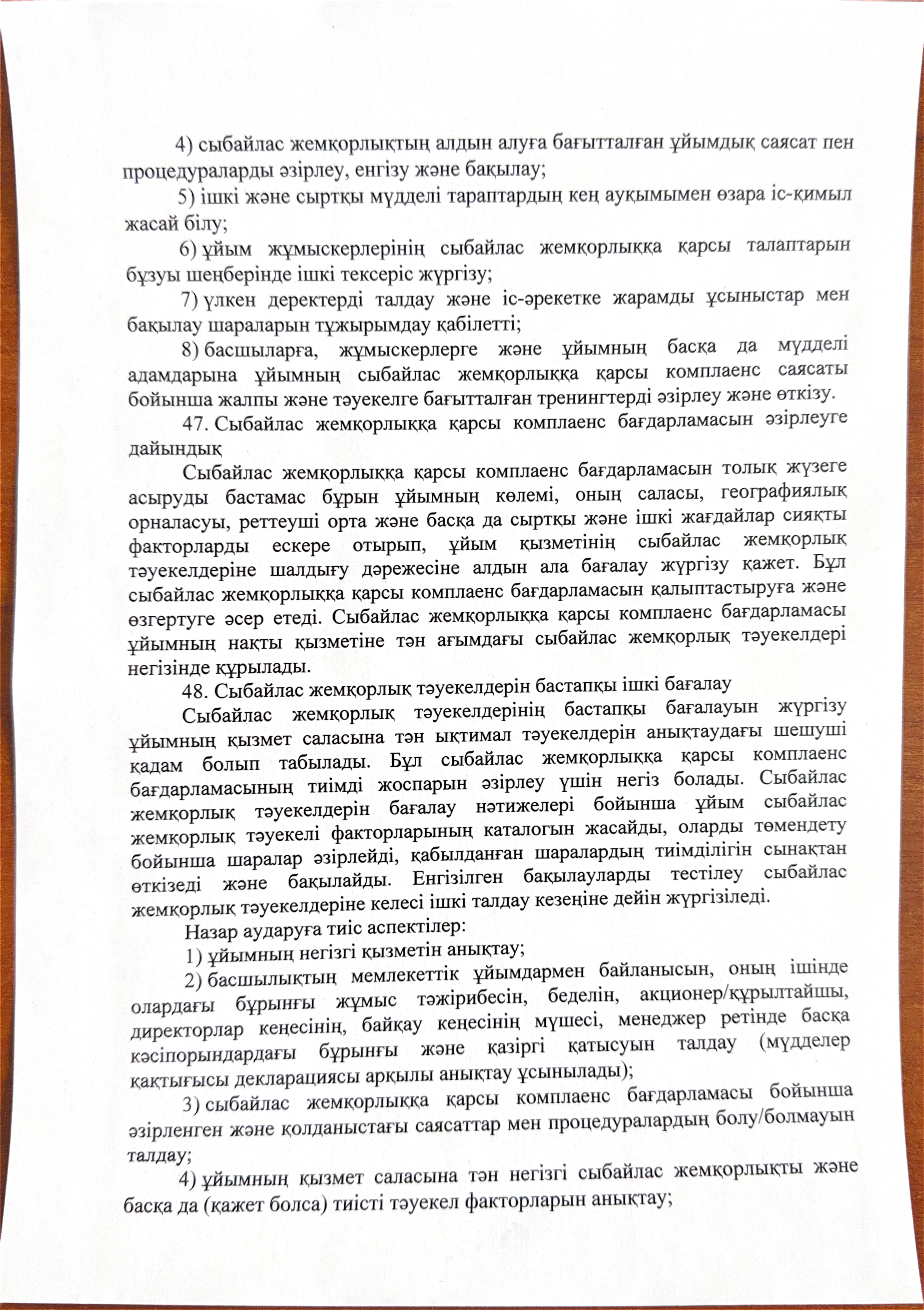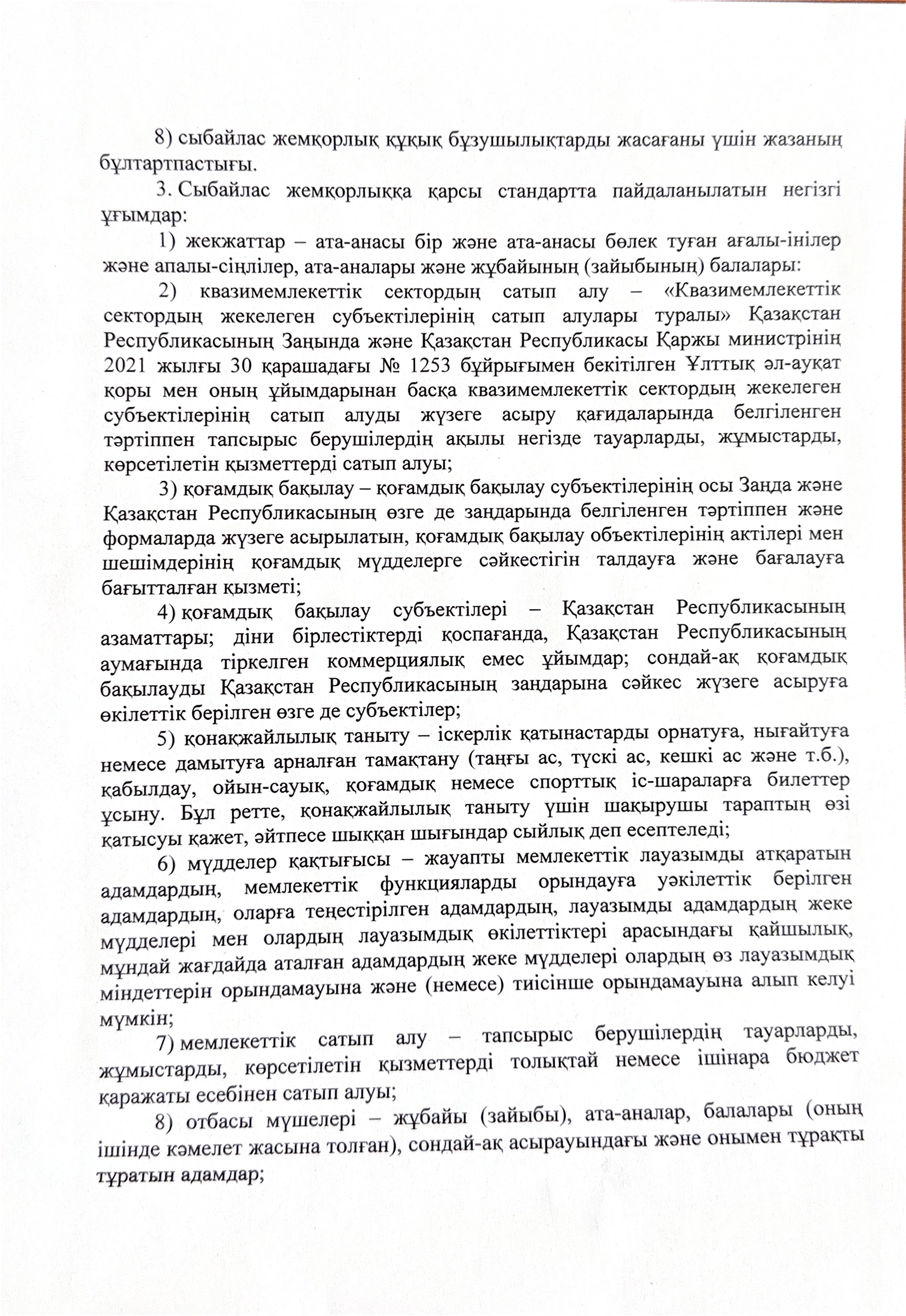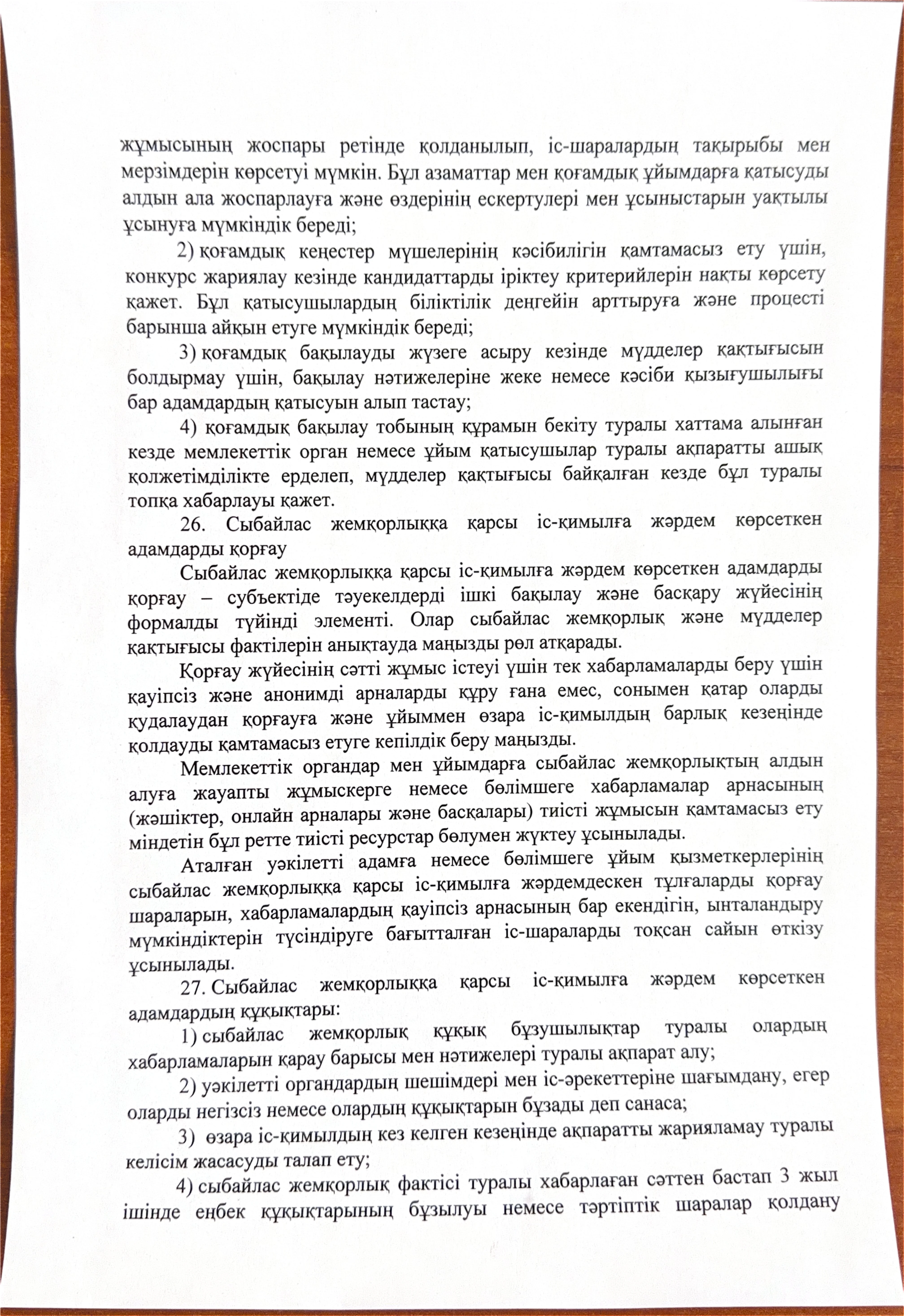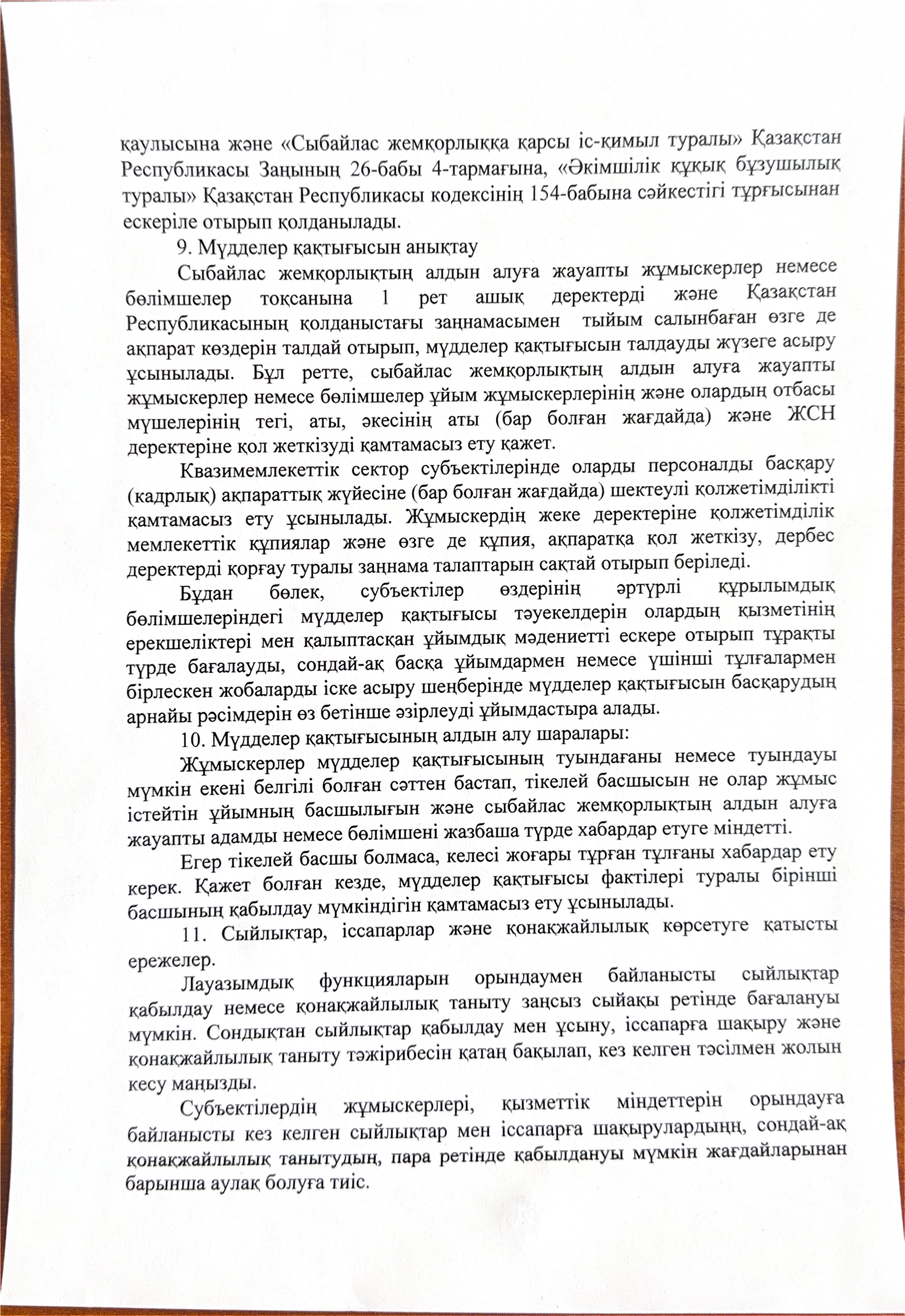 Антикоррупционный стандарт КГКП Кызылординский политехнический высший колледж имени Исатая Абдукаримова