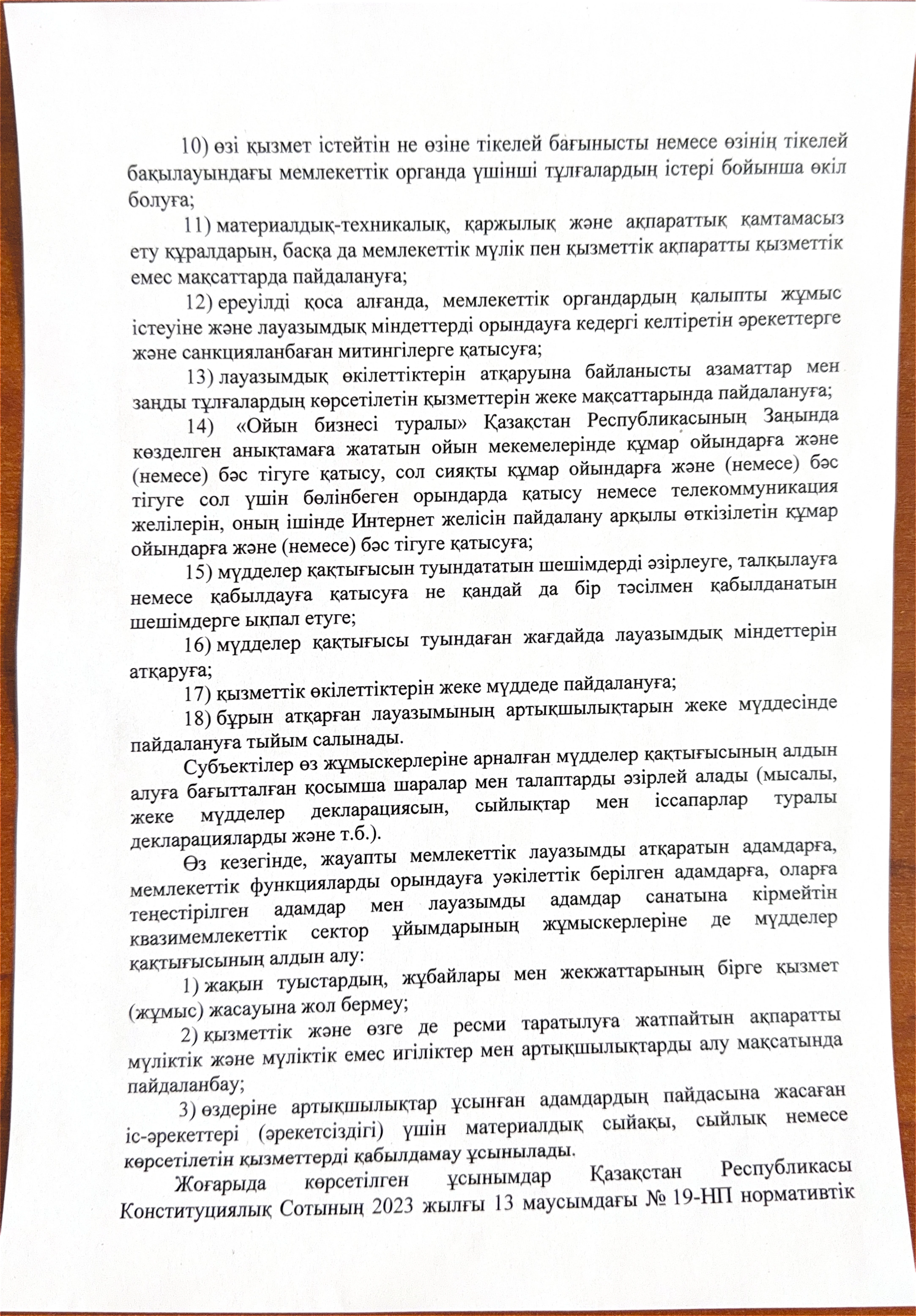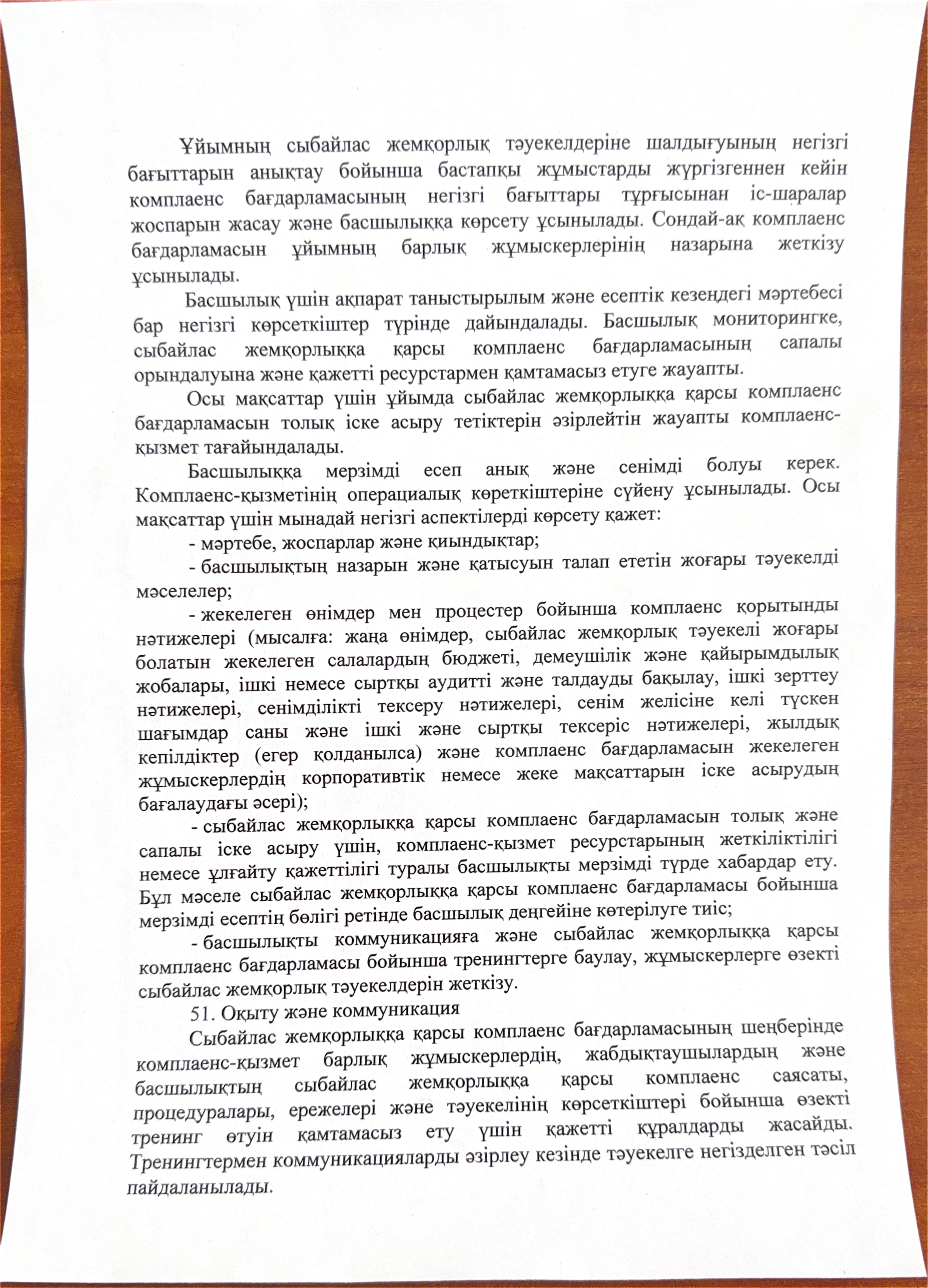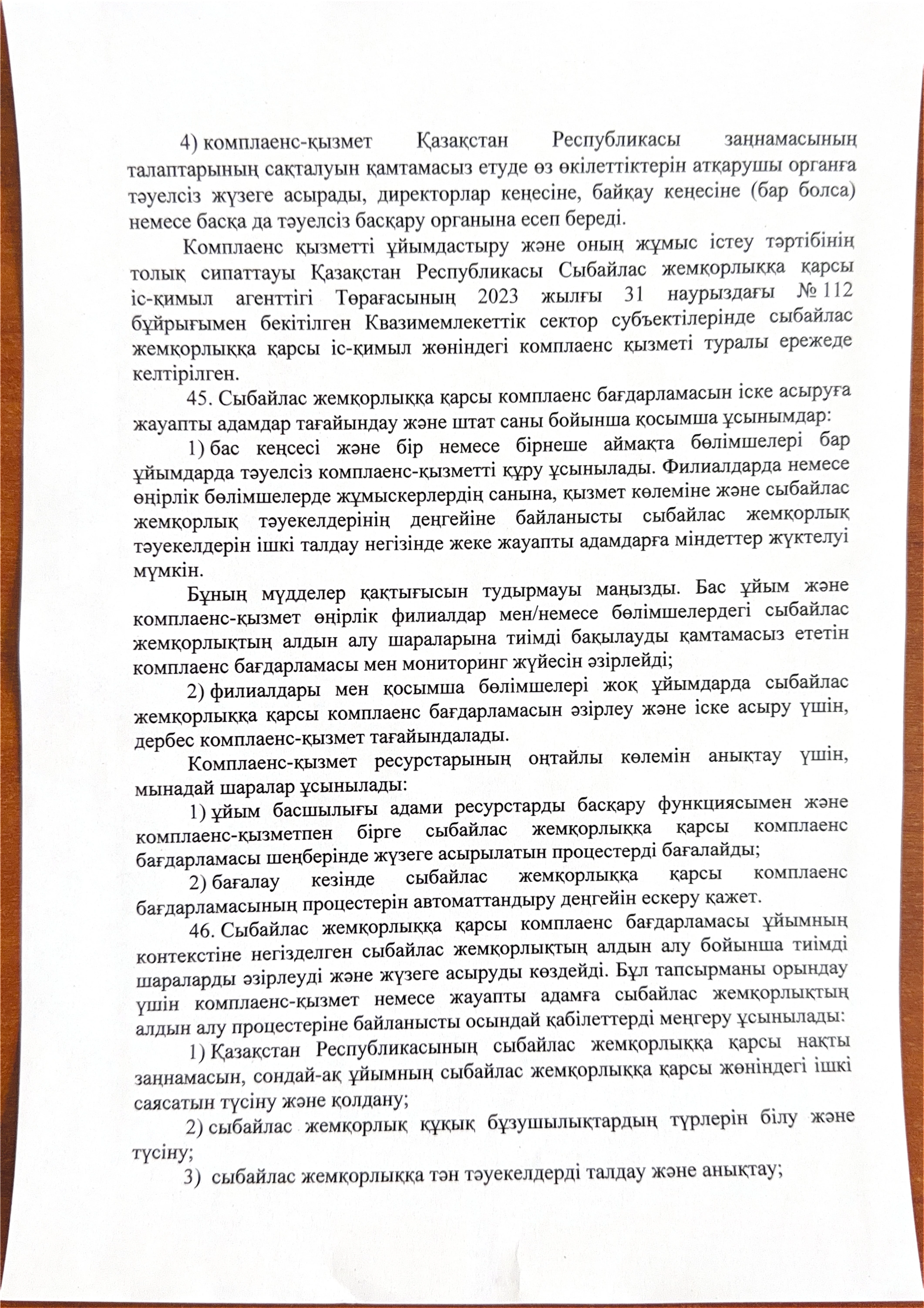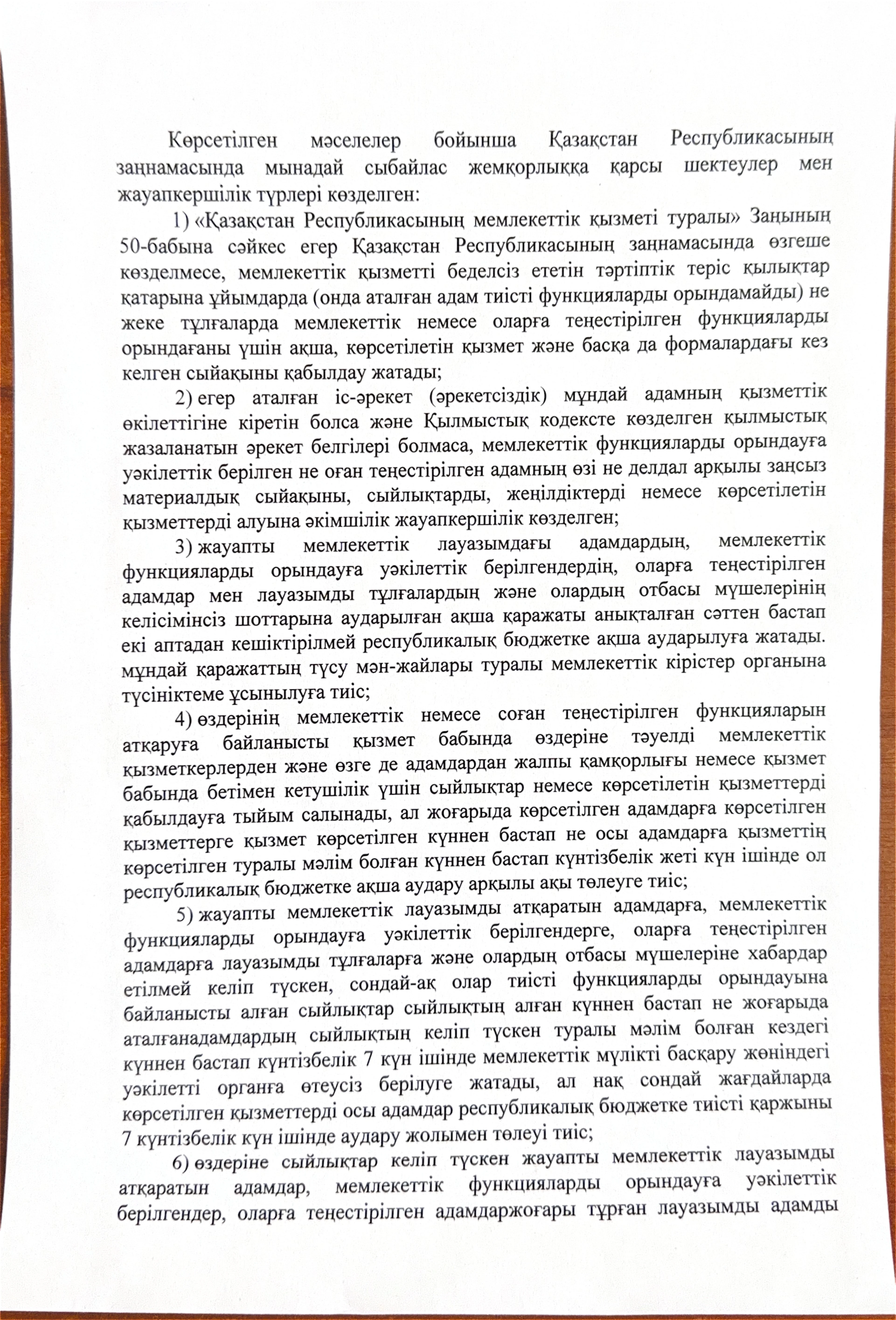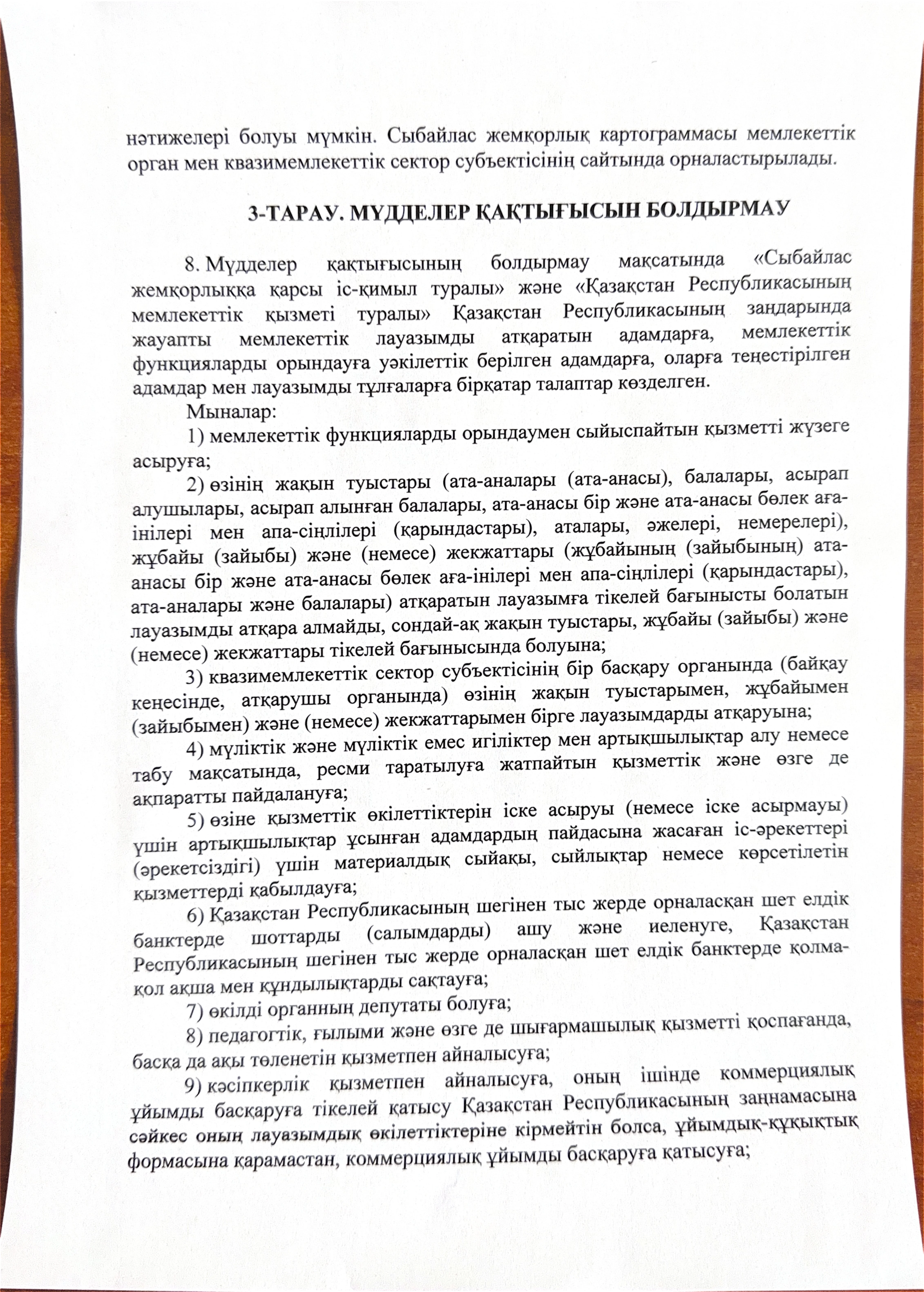 Антикоррупционный стандарт КГКП Кызылординский политехнический высший колледж имени Исатая Абдукаримова