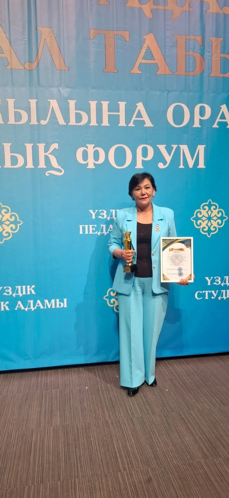 Эта награда — яркое свидетельство Вашего многолетнего труда, работы, которую Вы выполняли с молодых лет на производстве, Вашего профессионального мастерства, высокой ответственности и настойчивости. Признание Вашего труда — пример для будущего поколения, а Вы сами — символ служения на благо нации.