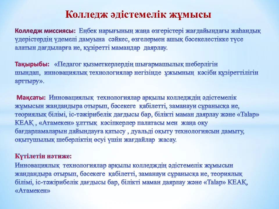 НУРПЕЙСОВА АЛИЯ АЛИАКБАРОВНА методист колледжа